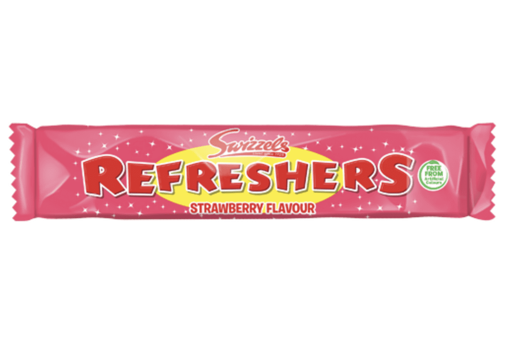 The iconic Refresher chew bars were invented 60 years ago when some clever clogs discovered the secret of adding the fizz! Swizzels Giant Strawberry Refresher is the irresistibly chewy and fruity confection that is a timeless classic. Made without artificial colours, this delicious refresher is similar to taffy, in that it consists of a strawberry chew bar filled with a tantalizing sherbet flavoured centre.
