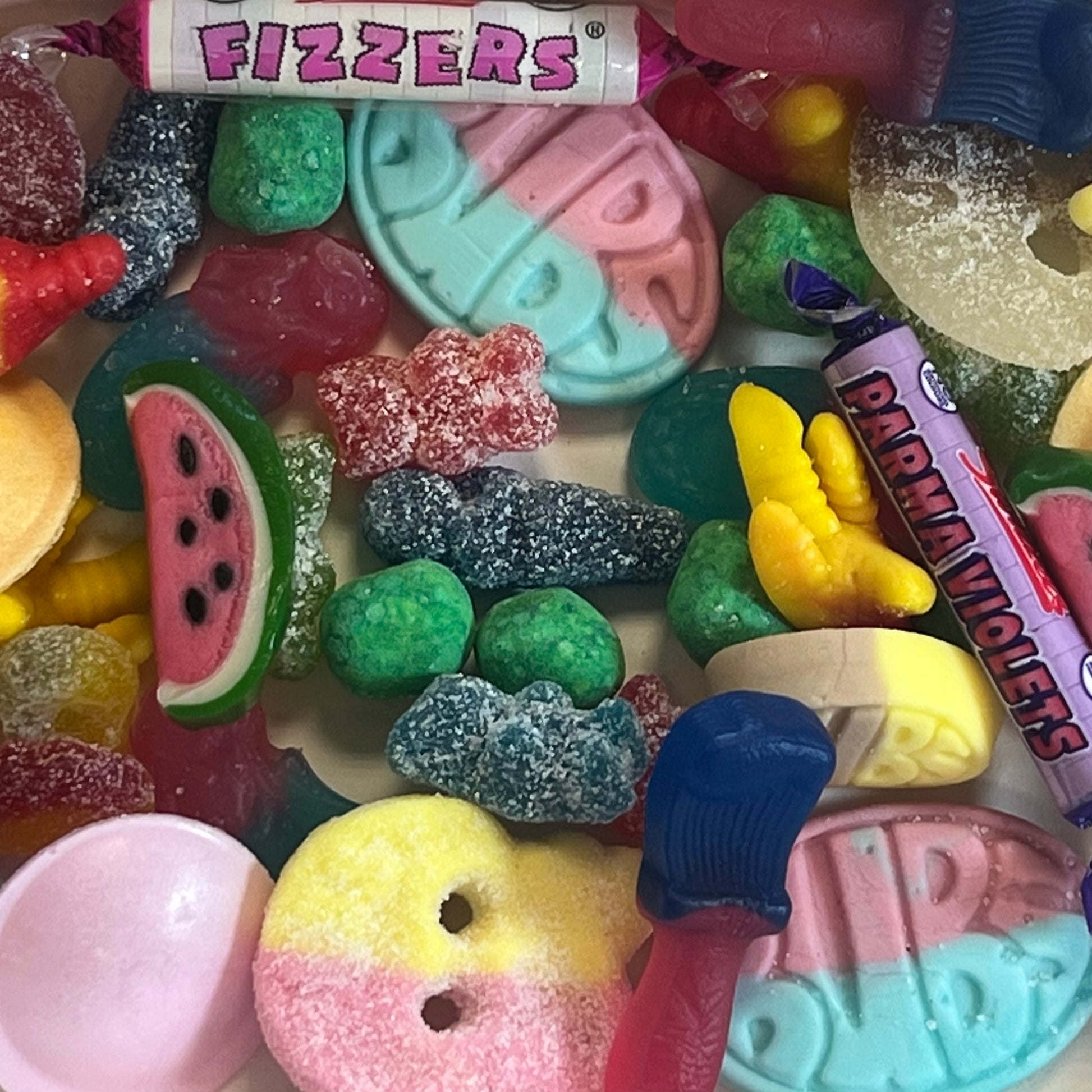 A selection of our vegan pick ‘n’ mix treats, available in 500g, 1KG, 2.2KG Victorian Jars and 3KG giant bags!